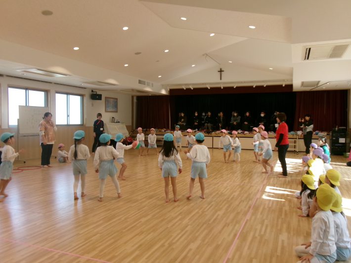 2月12日(木)準備保育 2026年02月12日 今回は、身体測定・内科検診、制服購入の日でした。4月の入園が待ち遠しいですね。 続きを読む 2月4日(水)体育コース・体操参観(はな・にじ組) 2026年02月4日 北冨先生のご指導のもと、体操と参観がありました。午後から、A組、北冨カップドッチボール大会が行われ、白熱した試合が繰り広げられました。 続きを読む 1月27日(火)A組 カンガルー交通安全教室 2026年01月27日 交通安全指導員の方に来て頂き、交通安全のお話やご指導を受けました。4月から小学生になるAさんが、楽しく安全に通学できますように。 続きを読む 1月21日(水)準備保育 2026年01月21日 新入園児がこども園の体験にきました。保育室でA組と一緒に活動をしたり、お話を聞きました。 少しずつ慣れてきて、安心して在園児と過ごしていました。保護者の方には、入園に向けての説明や、 大切にしていきたいことをお伝えしました。 続きを読む 1月15日(木)体育実技冬期講習会 2026年01月15日 北冨晴美先生に2歳児の公開体育指導をして頂きました。保護者にも参観して頂き、終了後、北冨先生から子どもの見方などお話をして頂きました。 続きを読む ‹ 前へ1234次へ ›最後へ »